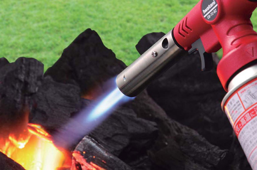 火が直接肌に触れないように、チャッカマンなど先が長いガスライターやトーチを使用して着火剤に火を付けます。火が出ている時にはうちわで扇がず、火が落ち着いてきたら扇いで火を上げ、を繰り返し、炭全体が白くなるまで燃焼させましょう。
