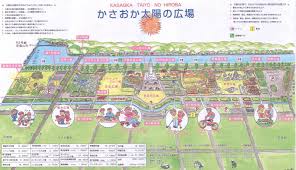 駅から車で10分位にある面積232.240平方メートルあり、多種多様な物が楽しめます。市制施行40周年記念事業として平成6年5月に完成した「かさおか太陽の広場」は子供から高齢者まで楽しめます。」仲間づくりができる野外型の交流広場として多くな人に利用されています。