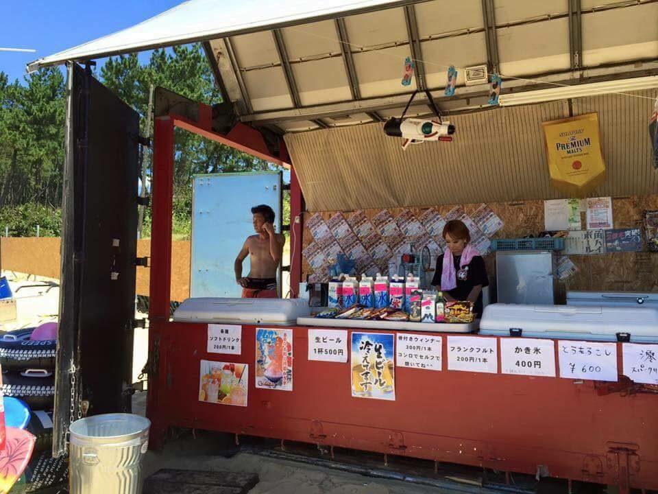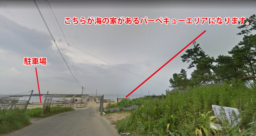 細道を抜けると目の前に海岸が見えますのでお車でお越しの方は左手の駐車場に車を止め、右手の海の家がある海岸エリアに入るとそちらがバーベキューエリアになります。
