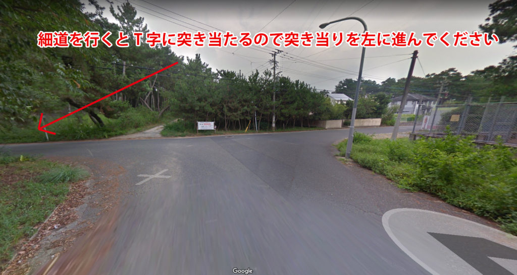 細道を道なりに行くとT字の突き当りに行きつくのでそのT字を左折して奈多海岸のほうに進みましょう。