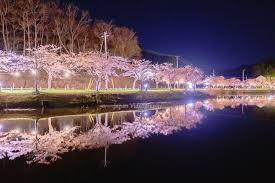 宮城県登米市の平筒沼ふれあい公園は、米山市にある平筒沼を取り囲む遊歩道には、町民参加によって植えられた500本の桜が見事に咲き誇ります。祭りの期間中は、18時頃から21時30分までライトアップされ、夜桜を見に訪れる人達で、大変な賑わいようです。