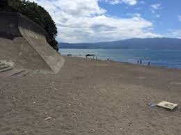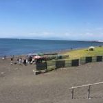 狩野川河口に発達した砂浜の海水浴場で、遠浅で水も澄み、沼津の海水浴場の穴場です。夏のシーズンには、地元の方々や大勢の人々がBBQを楽しんでいます。すぐ近くには沼津にゆかりの深い歌人、芹沢光治良の文学館もあります。文学館に隣接する我入道公園では、小さいお子さんも楽しくあそべる遊具があります。海で釣りをしたり、泳いだり、BBQも楽しめます。