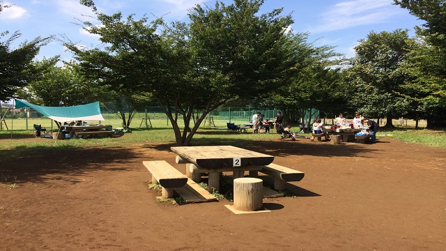 園内はデイキャンプエリアと多目的広場の二つで構成され遊具や売店などはございませんがバーベキューをするのに必要な施設は整っております。所沢航空記念公園では火気の使用は禁止されているため、バーベキューはこちらの公園内のデイキャンプ場のみとなります。利用の際はバーベキュー器材、食材などの持込が必要です。また、直火は禁止されており、バーベキューグリルなどの器材は持参が必要になりますが大きなベンチが5カ所設置されているので広いテーブルでゆったりと食事を楽しむ事ができます。また、一日5組までの予約制限がございますので早目の予約が必要となります。公営の施設ではございますが毎週水曜日が定休日(駐車場も閉まってます)なのでご注意ください。