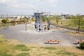 「けんこう広場」、「ぼうけんの丘」では5種類の健康器具や、ちびっこが楽しめる、2種類のコンビネーション遊具、スプリング遊具などがあります。