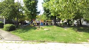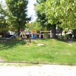 公園内にはブランコやすべり台などの遊具があります。細長い形が特徴の公園で、公園の周りには木々があり、木陰を作ってくれるので日差しが強い時期も過ごしやすいです。